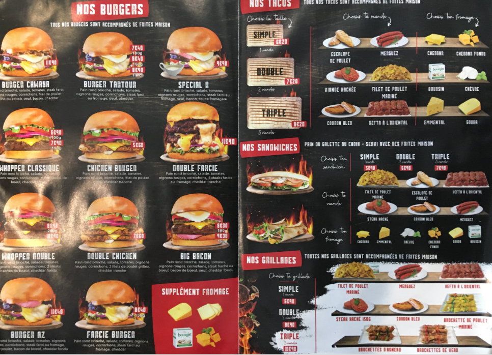 Il suffit de se rendre sur place pour voir la vitrine de viande et se rendre compte de la qualité des produits. Poulet mariné, kefta, steak haché fraîchement la qualité est au rendez-vous ! Frites maison ( ou fraîche ) Les pains burger sont top et les tacos bien préparé. Si il faut faire une remarque ...hum... Attention c'est pas toujours super chaud ... Même quand on prend sur place. Niveau tarif entre 8 et 12€ ce qui est totalement justifié. La conclusion c'est bien qu'on est chez le meilleur tacos burger de la place. Il n'y a pas photo !